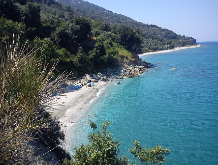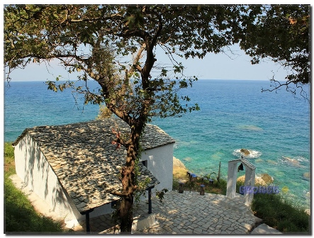 Η διαδρομή αυτή είναι μια από τις πιο ωραίες παραθαλάσσιες πορείες στο Πήλιο. Από το βόρειο άκρο της παραλίας ξεκινά χτιστό μονοπάτι που οδηγεί σε ένα εγκαταλειμμένο αρχοντικό (το αρχοντικό του Πάντου). Φτάνοντας στο αρχοντικό κάνουμε αριστερά, προς ένα μικρό σπίτι που υπάρχει εκεί, και συνεχίζουμε ευθεία πάνω σε πολύ καλό μονοπάτι. Κατά τόπους συναντάμε και στοιχεία καλντεριμιού. Το μονοπάτι περνά πάνω από απότομες αμμουδιές και η θέα είναι καταπληκτική. Σε κάποια σημεία χρειάζεται προσοχή γιατί το μονοπάτι έχει στενέψει σημαντικά από τη βλάστηση, ενώ υπάρχει και μια μικρή καθίζηση. Περνάμε από ένα προσκυνητάρι και συνεχίζοντας το μονοπάτι κατηφορίζει προς μια μικρή παραλία. Η παραλία αυτή είναι αρκετά σκιερή, υπάρχει κοντά πηγή με τρεχούμενο νερό ενώ υπάρχει και ένα εγκαταλειμμένο οίκημα: είναι επομένως αρκετά φιλόξενη για κατασκήνωση. Τον Αύγουστο μην περιμένετε ότι θα είσαστε μόνοι, υπάρχουν ήδη πολλοί που την έχουν μάθει...